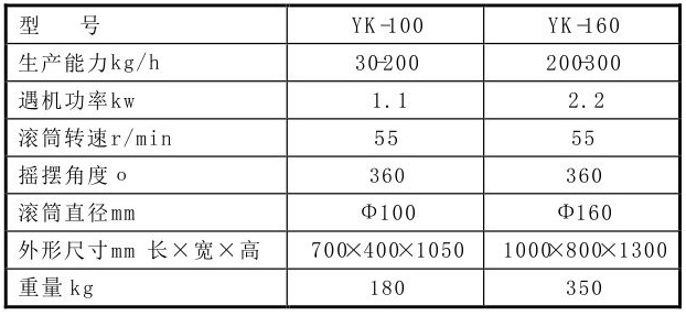 主要用途: 本機廣泛適用于制藥、化工、食品等行業(yè),將潮濕的粉末物料制成顆粒,亦可粉碎塊狀的干物料。 工作原理: 通過機械傳動使?jié)L筒往復(fù)擺動,將物料從篩網(wǎng)中擠出制成顆?;蚍鬯橹屏?。 技術(shù)參數(shù):