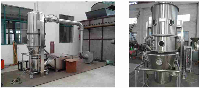 粉狀物料投入料斗(密閉容器)內(nèi),由于熱氣流的作用,使粉末懸浮呈流化狀循環(huán)流動,達(dá)到均勻混合,同時噴入霧狀粘結(jié)劑潤濕容器內(nèi)的粉末,使粉末凝聚成疏松的小顆粒,成粒的同時,由于熱氣流對其作高效干燥,水分不斷蒸發(fā),粉末不斷凝固,此過程重復(fù)進(jìn)行,形成理想的、均勻的多微孔球狀顆粒,在容器中一次完成混合、造粒、干燥三個工序,即簡稱"一步制粒"。