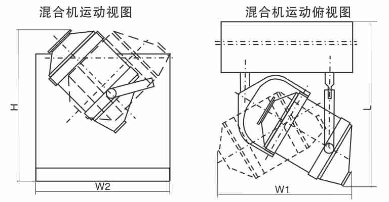 用途及特點(diǎn): 本機(jī)為高效率混合設(shè)備,可用于制藥、食品、化工、輕工、機(jī)械、電子、礦冶、國防工業(yè)、科研等企事業(yè)單位的粉狀物料的高均勻度混合。 物料在混合過程中無離心力作用,無比重偏析及分層,積聚現(xiàn)象,各組份可在懸殊的重量配比下均勻混合。 裝料系數(shù)高,可達(dá)到80%(普通混合機(jī)僅為40%左右)且混合時(shí)間短,是目前各種混合機(jī)中的一種較理想產(chǎn)品。 設(shè)備結(jié)構(gòu)緊湊,傳動(dòng)采用無級(jí)調(diào)速(變頻或電磁調(diào)速),操作十分方便。 料筒各處為圓弧過渡,并經(jīng)過精密拋光處理,達(dá)到GMP要求。 工作原理: 混合料桶,通過二只Y型萬向節(jié)懸裝于主、從動(dòng)軸端部,二只萬向節(jié)在空間既交叉又互相垂直。當(dāng)主動(dòng)軸被拖動(dòng)旋轉(zhuǎn)時(shí),萬向節(jié)使料桶在空間周而復(fù)始地作平移、轉(zhuǎn)動(dòng)和翻滾等復(fù)合運(yùn)動(dòng)。物料則在筒體內(nèi)跟著作軸向、徑向和環(huán)向的三維復(fù)合運(yùn)動(dòng)。筒內(nèi)的多種物料相互流動(dòng)、擴(kuò)散、摻雜,最后呈均勻狀態(tài)。
